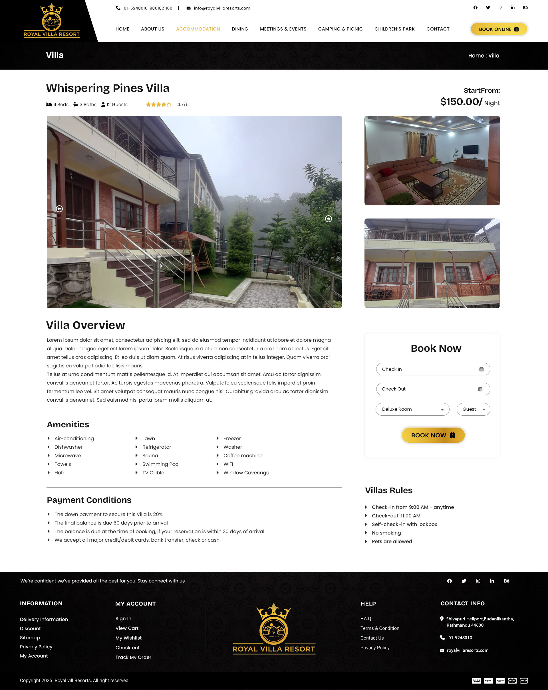 Royal Villa Resort Description Royal Villa Resort https://www.royalvillaresort.com Technology HTML/CSS Custom UI/UX Design Php Javascript Laravel Front-end and Back-end